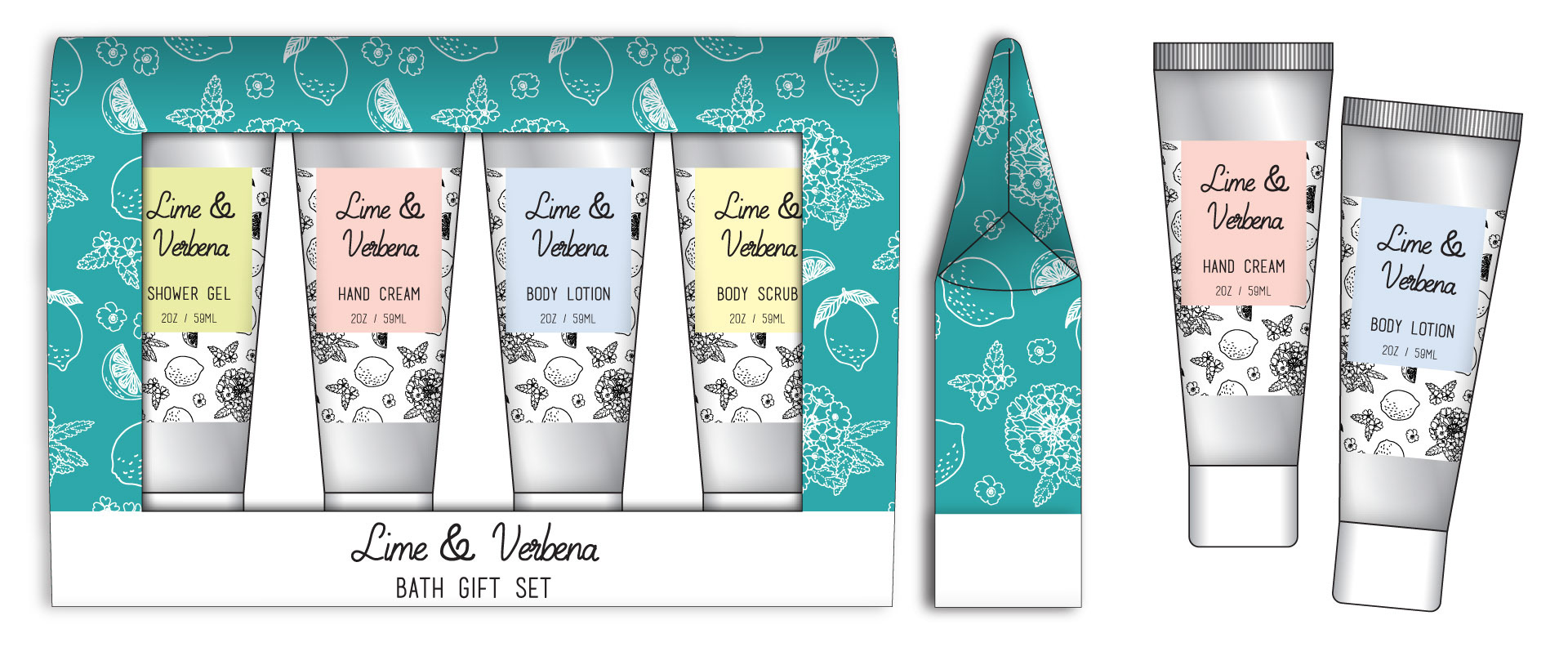 I created the below label and packaging concepts for soap and lotion sets. I made sure to create a variety of designs based on trends so they felt both fresh and accessible. These were shown to customers such as Dollar Tree and Marmaxx.