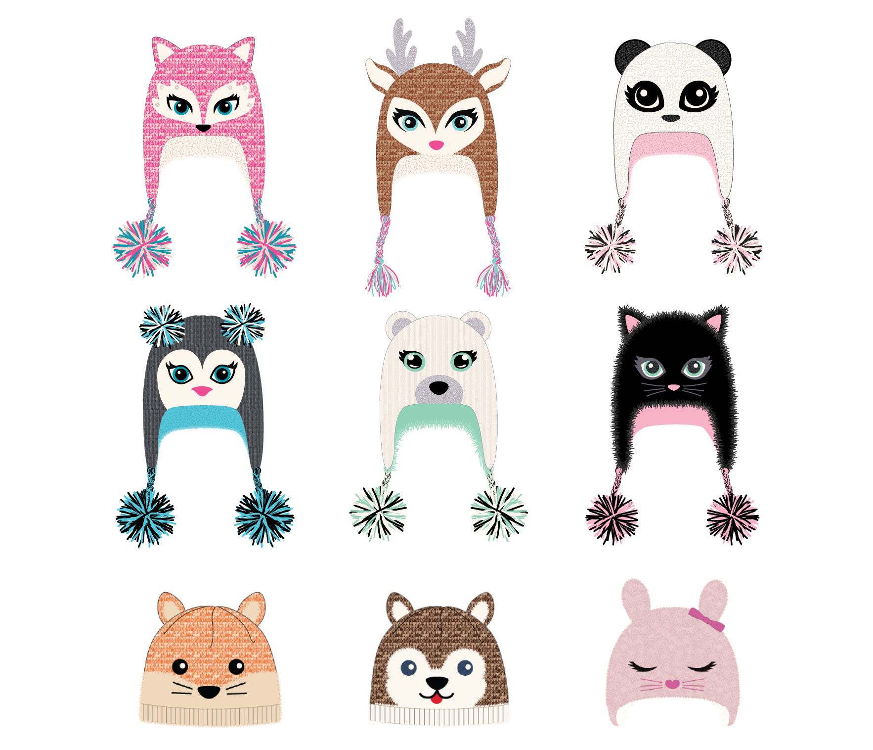 Animal knit hats have been one of my favorite products to work on. I've created many varieties of similar animals by adjusting the facial features and special materials such as space dye yarn, glitter, and sequins.